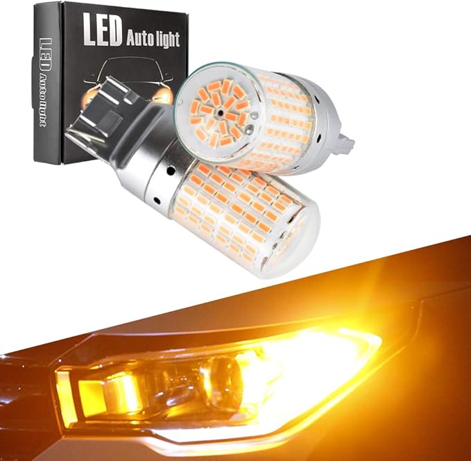 【商品仕様】口金タイプ:T20 シングル 7440 W21W WY21W ピンチ部違い / 発光色:アンバー / LEDチップ:3014SMD / LEDチップ数:144連 / 入力電圧:DC12V / 電流:1.75A / 消費電力:21W / 極性:無極性 / サイズ(約):全長57mm 最大直径20mm 差込口幅16mm / 保証:100日保証。(※ご購入前に、必ずバルブのサイズや差込口の形状、タイプの確認をお願いします。)