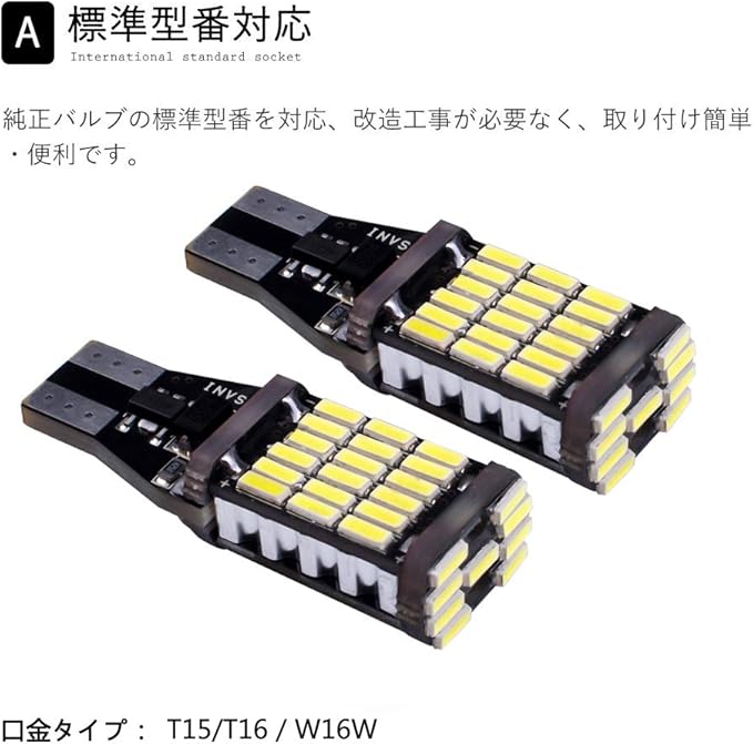 XADMIN LED バックランプ T15 / T16 W16W ランプ CANBUS 45連 4014 SMD 高輝度 爆光 ホワイト テールランプ ポジションランプ 無極性 DC 12V 2個セット 1年保証