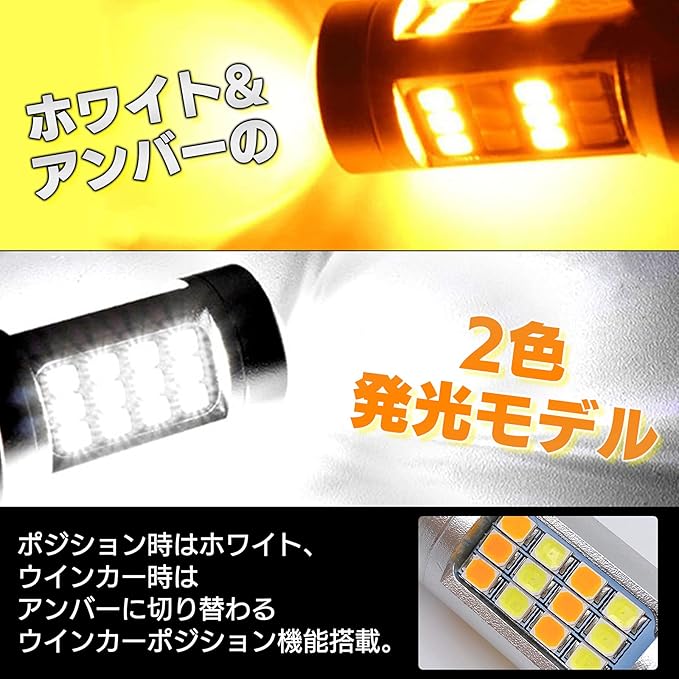 Meliore ウインカーポジション キット LED T20 ダブル 12V アンバー ホワイト キャンセラー 内蔵 スモール ウィンカー ランプ オレンジ 2色切替 高輝度 バルブ 2個 セット