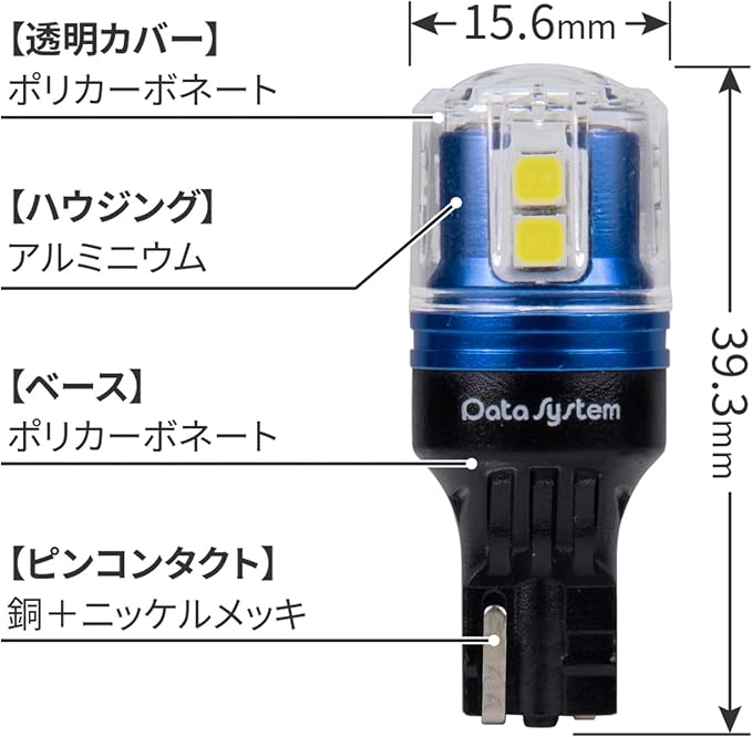 データシステム LEDバルブ(T16タイプ) 2個入り 6000K バックランプ用 LED-T16A Datasystem