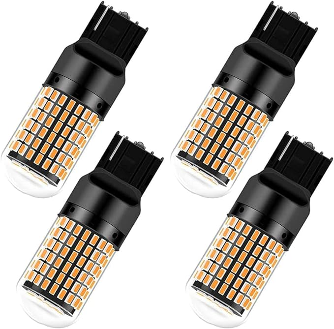 【T20 ピンチ部違い led ウインカー アンバー】ソケット:T20 シングル 7440 W21W WY21W ピンチ部違い対応 / 発光色:アンバー / LEDチップ:3014SMD / LEDチップ数:144連 / 入力電圧:DC 12V / 電流:1.75A / 消費電力:21W / 極性:無極性 / サイズ(約) :全長55mm 最大直径20mm 差込口幅16mm / パッケージ内容:LEDバルブ 4、100日保証