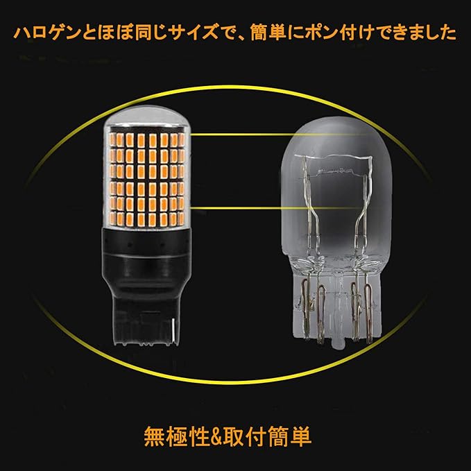 【最新型のデザイン】 純正T20サイズ箇所で利用した144LEDが持っています、爆光が大幅に向上しました。ウインカー、コーナーランプ、ターンシグナルランプなどの所を使うことができます。極性はありません、極性の確認が不要です。取り付けも簡単、数分の時間は完成できます。