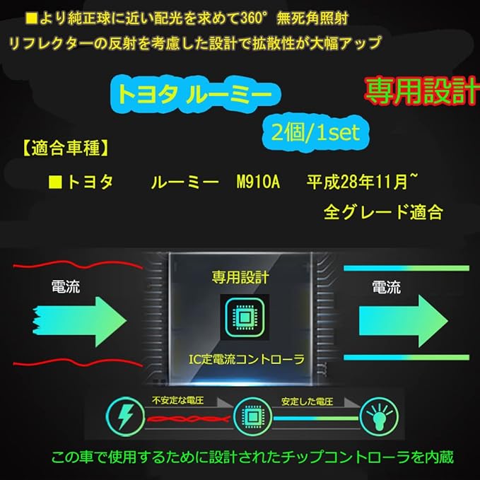 【専用設計】ルーミー 専用設計。専用設計ならではのフィット感,CANBUSキャンセラー内蔵,別途抵抗不要!ポン付けで良いので面倒な配線処理も必要ありません。
