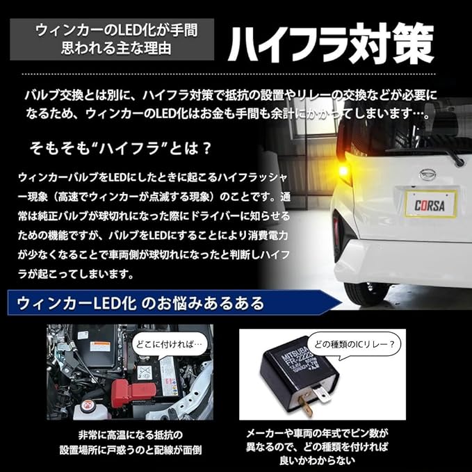 ✅ 昼夜問わず高い視認性:高輝度LEDチップ採用により、日中でもしっかり視認可能。キレのあるアンバー発光で安全性とドレスアップ性を両立します。
