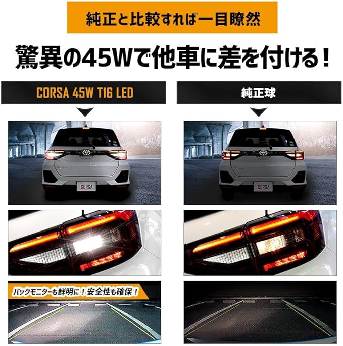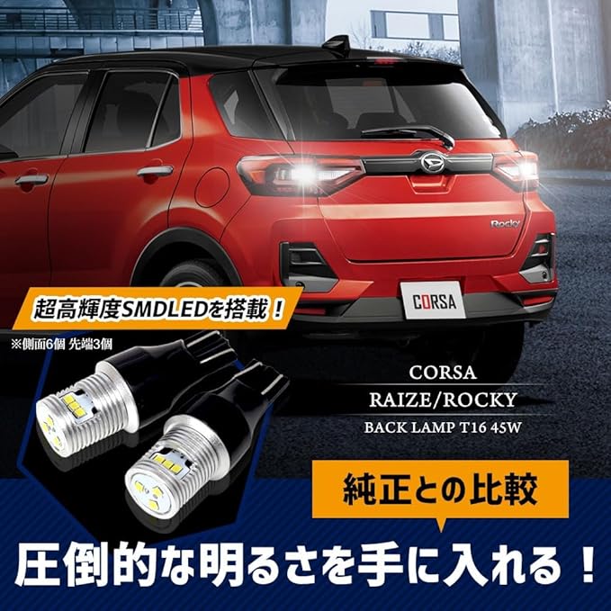 CORSA ライズ/ロッキー 適合 LED バックランプ T16 45W 2個1セット バックライト ホワイト 無極性 6500K 560lm カスタム パーツ アクセサリー ドレスアップ RAIZE ROCKY [2] M