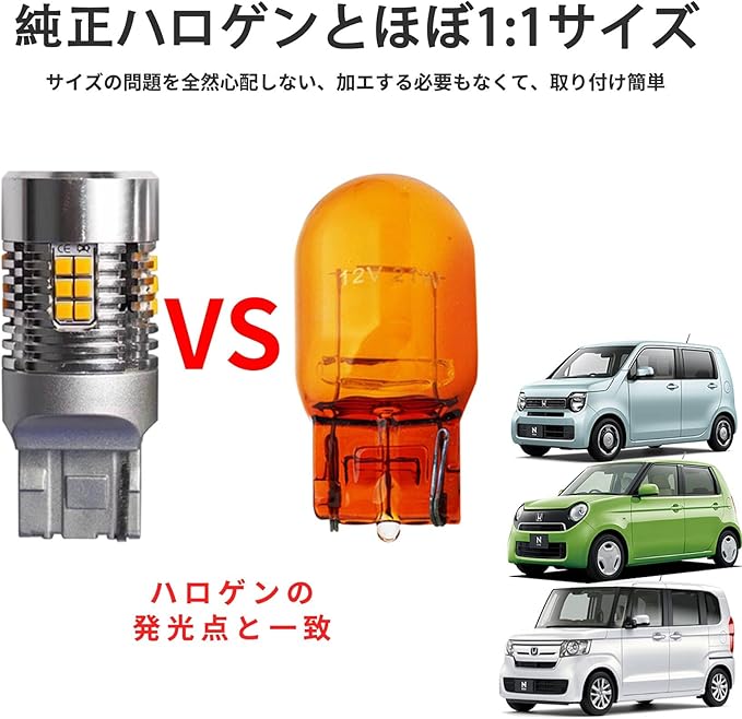 リアLEDウインカー:バルブ全面に2020年製高性能ウインカー専用LEDチップを36個搭載し、360度十分な発光を実現します。 この明るさにより、車両後方をより遠くまで広範囲に照らすことができ、安全性が大幅に向上します。 昼間の環境下でも目に見える明るさと拡散性、純正ハロゲンバルブよりも明るく省エネ、明るさが約4倍と大幅にアップします。 夜間の視認性を向上させ、運転の安全性を確保します。