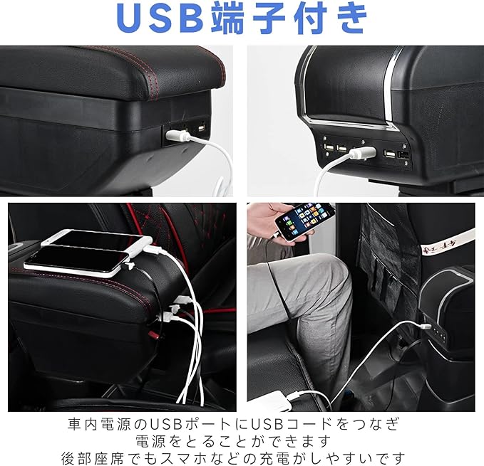 【9つUSB充電多機能】USBポートが前6口、後ろ3口付いています。コンソールボックスには、さまざまな飲み物や水を入れることができるの飲み物ホルダーが付属しています。