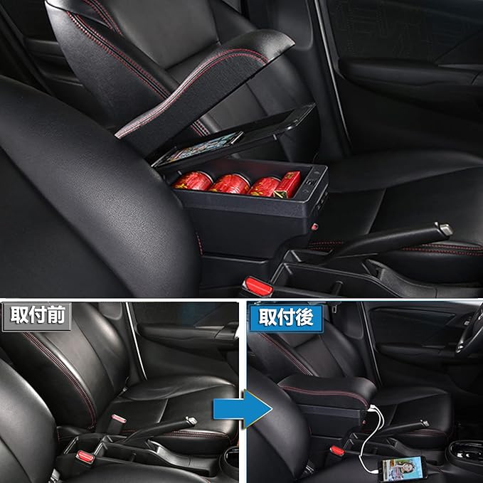 汎用3D 柔らかい外付コンソールボックス豪華アームレスト 車 肘置き 肘掛け 7USB充電ボックス多機能プロボックス大容量ルーミー コンソールボックス小物入れ収納アクセサリー カー用品センターコンソール