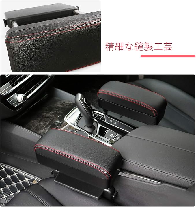 【RUIYA】ホンダ 汎用 肘掛け コンソールボックス アームレスト収納ボックス 車用アームレスト 隙間アームレスト 車用収納ポケット (黒/赤ステッチ)