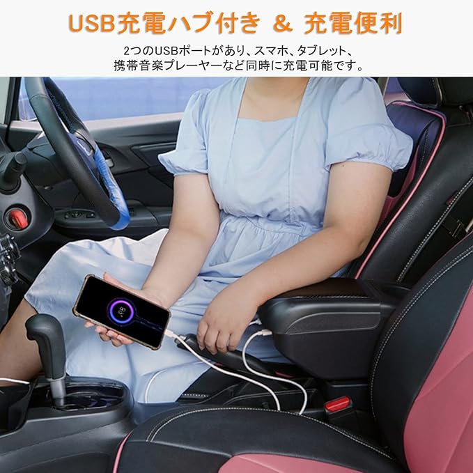 2代目 E12 ノート用の車用アームレスト 車内大容量収納ボックス センターコンソールボックス 二層タイプ 小物入れ Note e-POWER NISMO ニスモ コンソールボックス 2016.11-2020.11現行 後期型 USB充電ポート付き 車種専用設計 長距離運転最適 内装パーツ 簡単組立 ブラック