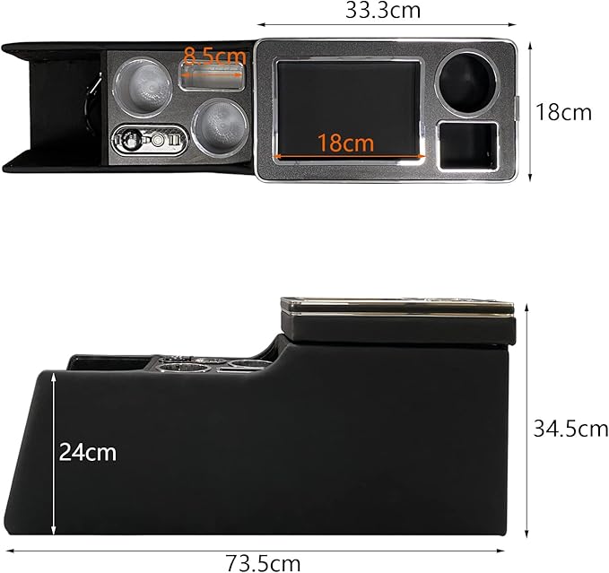 適合車種:80系 70系 60系 NOAH適合 VOXY適合 ESQUIRE適合。サイズ:53*35*18cm,重量:6kg。本コンソールボックス汎用品ですので運転席と助手席の間に18cm以上のスペースが確保出来、床面が平らなお車でしたらお取付けが可能でございます。