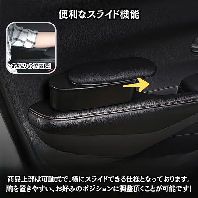 【便利なスライド機能】商品上部は可動式で、横にスライドできる仕様となっております。運転中に腕を置きやすい、お好みのポジションに調整頂くことが可能です!