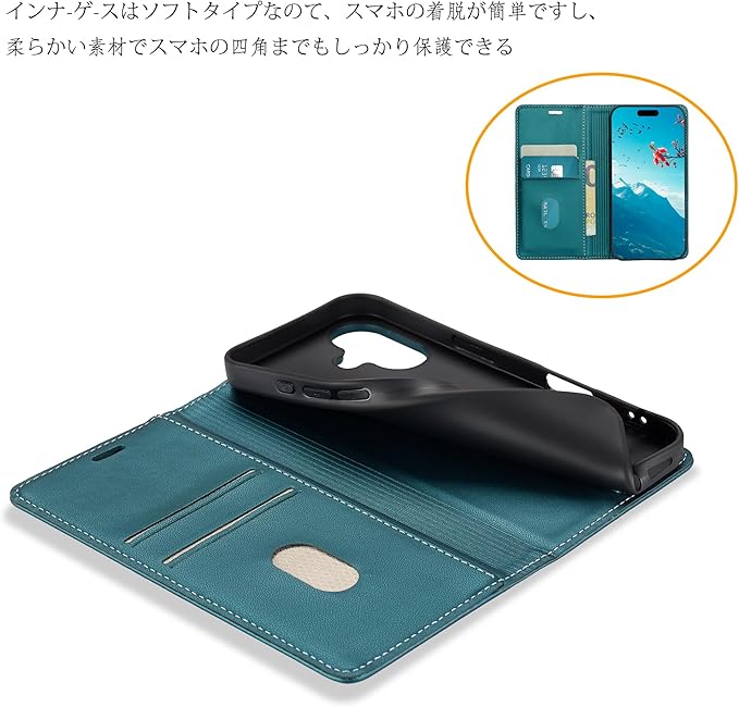 ・パール光沢のあるPUレザーを使用しており、柔らかく手触りが良いだけでなく、長時間の使用でも色落ちや劣化を防ぎ、天然皮革のような高級感と柔らかさを持ちながら、耐久性にも優れています。環境にも優しく、さらに耐水性や耐汚れ性も備えています。インナーケースは柔らかいソフトTPU素材を採用して、スマートフォンに完全にフィットするように設計されています。