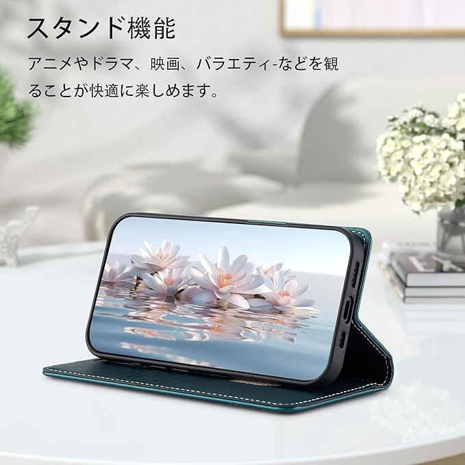 適合するGoogle Pixel 10ケース 手帳型 ピクセル10Pro用のケース pixel10手帳ケース case 真珠光沢レザー RFID磁気防止 内蔵マグネット スタンド機能 カード入れ 薄型ビリジアンブルー