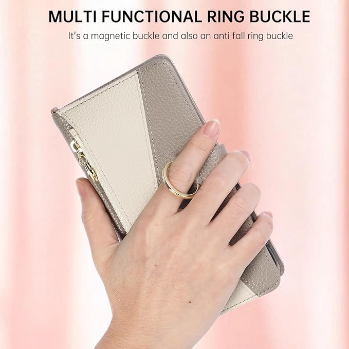 Google Pixel 10 / 10 pro ケース 手帳型 グーグルピクセル10 ケース 手帳型 ショルダー リング付き スマホケース ピクセル10pro 用 手帳型ケース おしゃれ 2色パッチワーク 6.3インチ対応 Pixel10 携帯カバー かわいい 女性 シンプル カード収納 小銭入れ 財布型 肩掛け 斜め掛け スタンド機能 落ち着いた色(グレー)