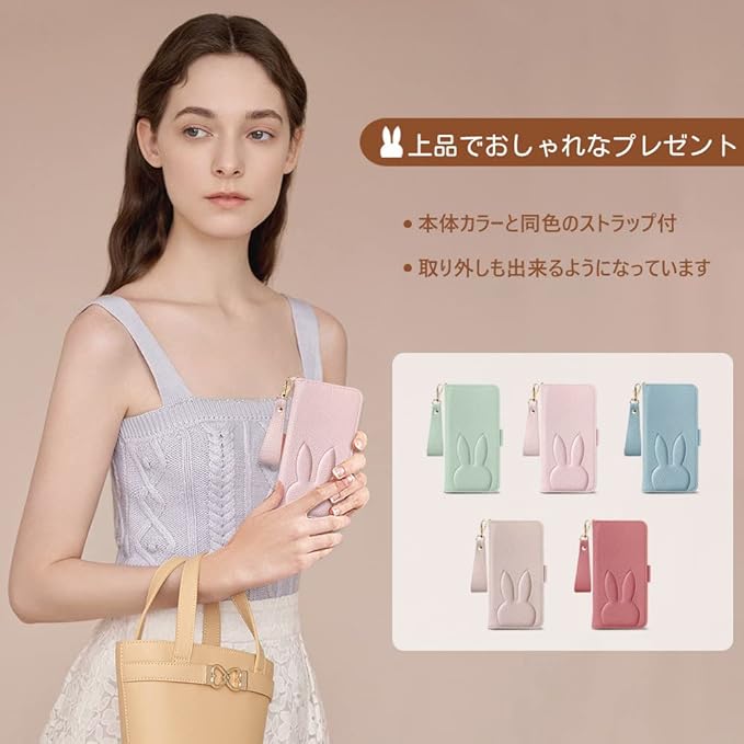 【人気ケース 手帳型と可愛いうさぎ】①大人かわいいスマホケース手帳型の場合はカバーが画面を覆っているため、画面から直接地面に落ちる場合は、スマホの画面を保護してくれるので!②片手操作に特別に設計されています、オリジナルデザインの可愛い凹凸面ウサギ手帳型カバー、手触りが滑らかで傷が付きにくく、カラーマッチングも進んで満足感があり③素材は丈夫で手触りも良く本革より耐久性に優れ、清潔もより便利です,同じ色の手作りストラップ、持っている価値があります