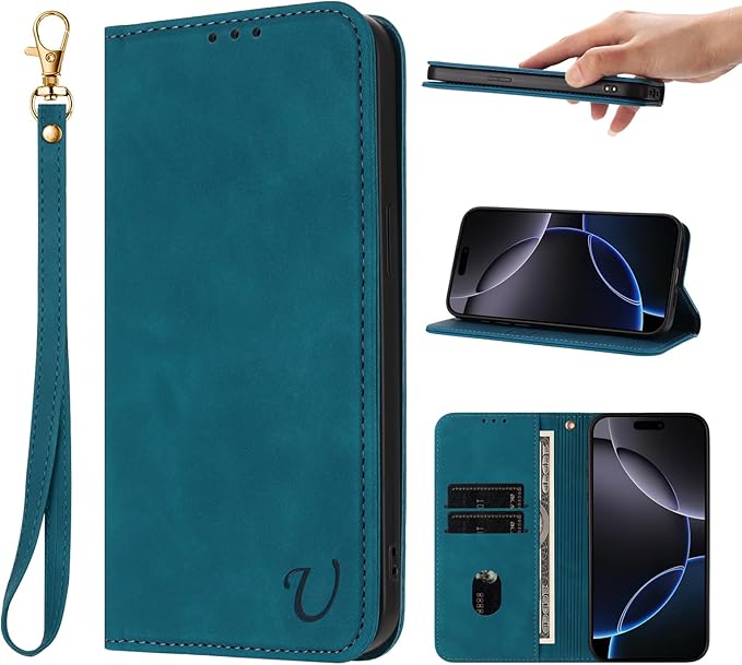 兼用 Google Pixel 10 / 10 Pro用の ケース手帳型カバー 同色ストラップ付き 肌触り良いレザー スマホケース マグネット内蔵 全面保護 耐衝撃 耐摩擦 スタンド機能 カードケース 財布型 カード入れ ターコイズ