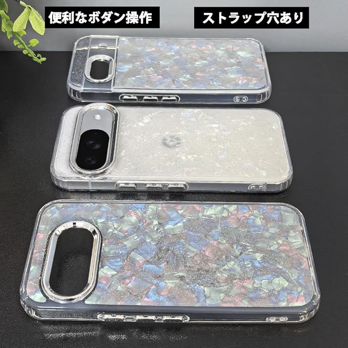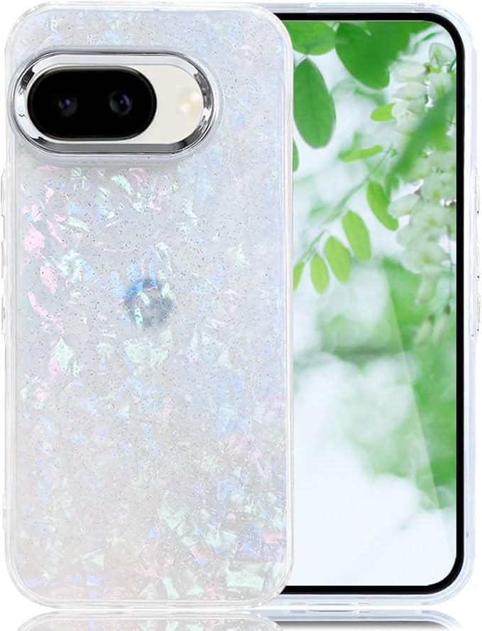 スマホケース 対応 Google Pixel 9 / 9Pro / 10 / 10Pro 兼用 クリアケース 透明 キラキラ フラッシュ シェル柄 貝殻柄 かわいい スフとTPU 傷防止背面 滑り止め 衝撃吸収 おもしろい キャラクター ストラップ穴 女性人気 グルピクセル10 携帯電話カバー (マルチカラー, Pixel 9/9Pro/10/10Pro)