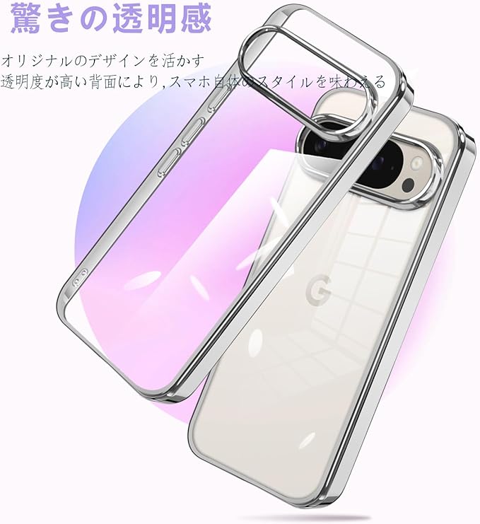 Google pixel 10/10 Pro 用 ケース クリア 透明 ピクセル10/10pro スマホケース カバー 耐衝撃 柔軟 薄型 ソフト tpu メッキ加工(シルバー)