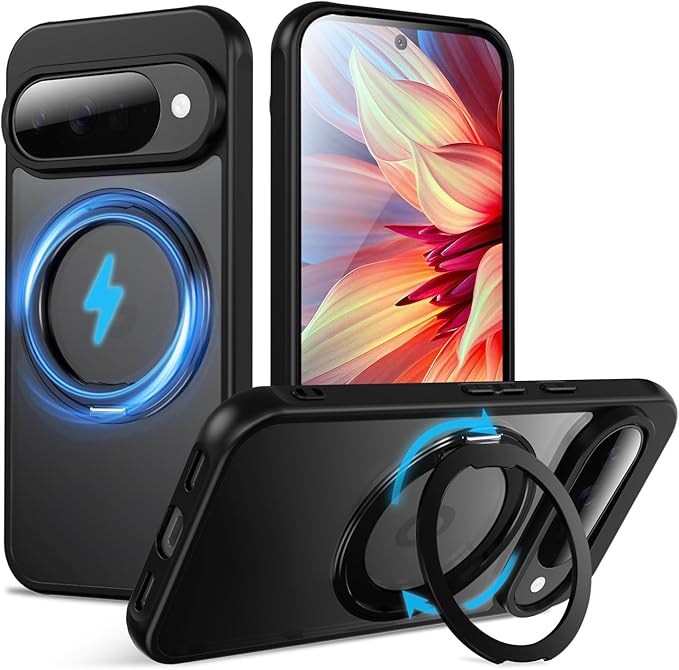 QUEASON【Google Pixel 10/10Pro 通用 MagSafe対応 ケース】360 回転スタンド ワイヤレス充電対応 pixel10 pro 用 ケース リング付き 米軍MIL規格 ピクセル10 用 スマホケース magsafe 超強磁力 落下防止 グーグルピクセル10 スマホケース 耐衝撃 半透明 防指紋(ブラック)