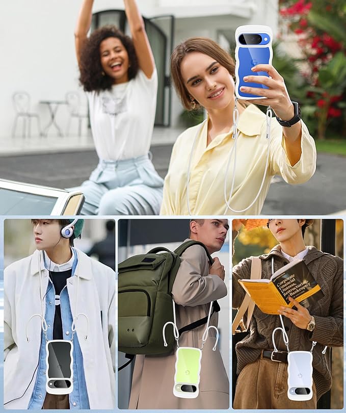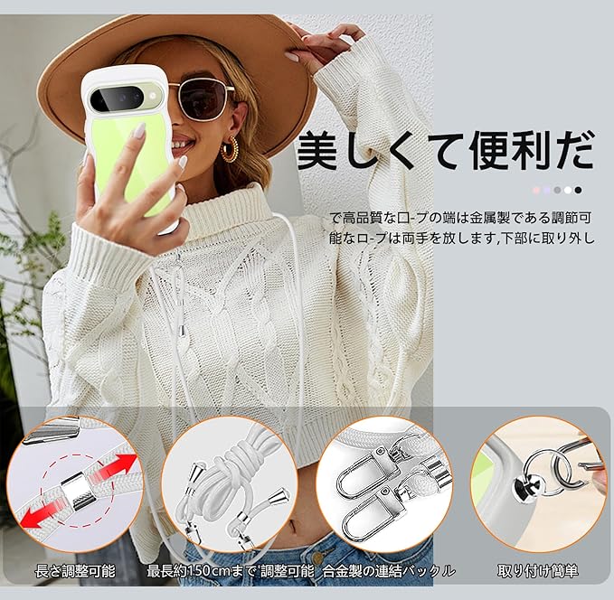 Google Pixel 10/Google Pixel 10 Pro ケース クリア ショルダー 耐衝撃 ピクセル10/10pro スマホケース カバー 薄型 軽量 首かけ 肩掛け 縄掛けケース ストラップ付き 取り外し可能 長さ調整可能 ワイヤレス充電対応 透明(ホワイト)