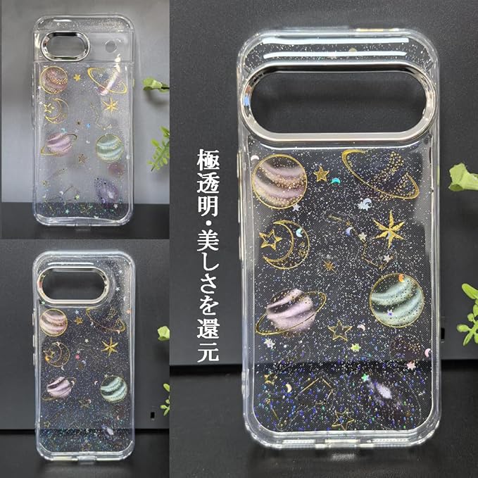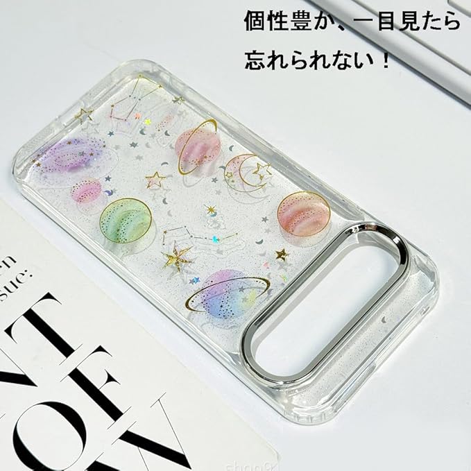 [YUYIB] スマホケース 対応 Google Pixel 9 / 9Pro / 10 / 10Pro 兼用 クリアケース 透明 キラキラ フラッシュ 星 月 星空 かわいい スフとTPU 傷防止背面 滑り止め 衝撃吸収 おもしろい キャラクター ストラップ穴 女性人気 グルピクセル9 Pro 携帯電話カバー (ピンク, Pixel 9/9Pro/10/10Pro)