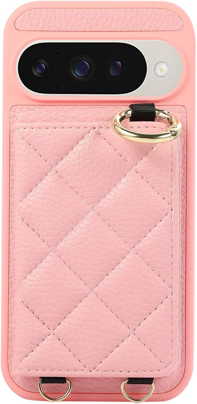 Google Pixel 10/Pixel 10 Pro ケース 手帳型 ショルダー スマホケース ピクセル 10 プロ/ピクセル10 ケース 手帳型 鏡付き 肩がけ 首掛け 斜め掛け ストラップ着脱可 財布付き リング付き ストラップ 長さ調整可能 マグネット内臓式 背面カード収納 カバー(ピンク)