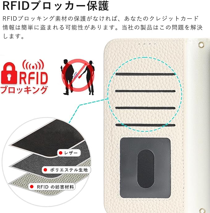【高品質デザイン】外装はレザー製で、tpu素材に比べ、優れた耐衝撃性.カードスロットはRFIDブロック素材の保護設計で、クレジットカード情報が盗まれるのを防ぐことができます。スタイリッシュな外観、優れた耐傷性と防塵性能。変形しにくく、完全な保護を提供することができます。