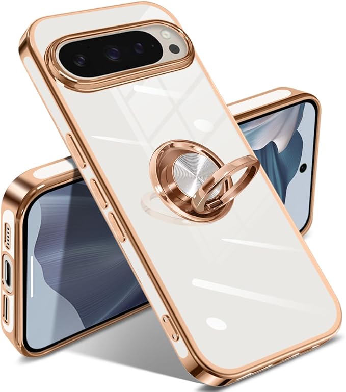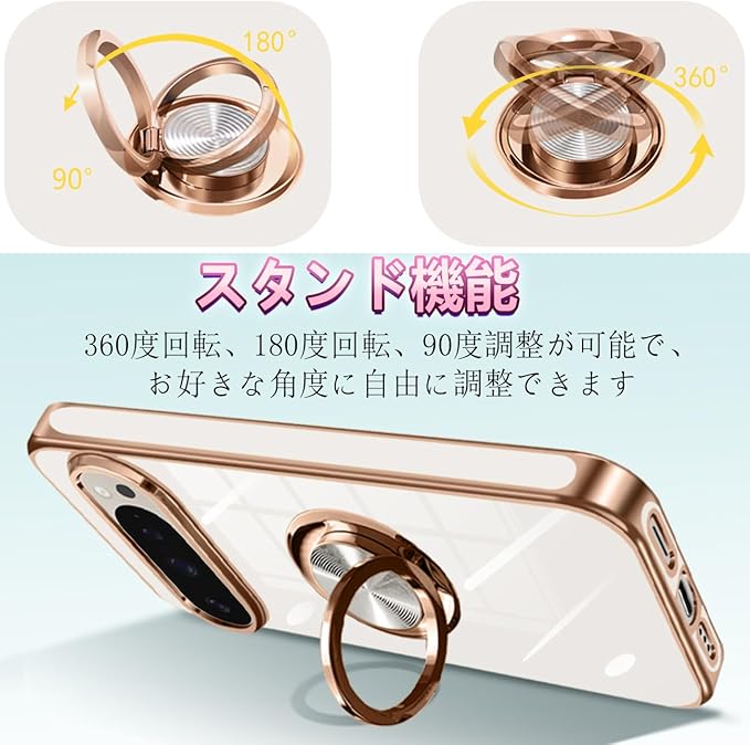 Google Pixel 10/10 Pro ケース リング ピクセル10/10 Pro カバー リング付き 耐衝撃 人気 米軍MIL規格 メタリックな質感 TPU 軽量 携帯カバー スタンド機能 車載ホルダー対応 360 回転 指紋防止 (ホワイト)