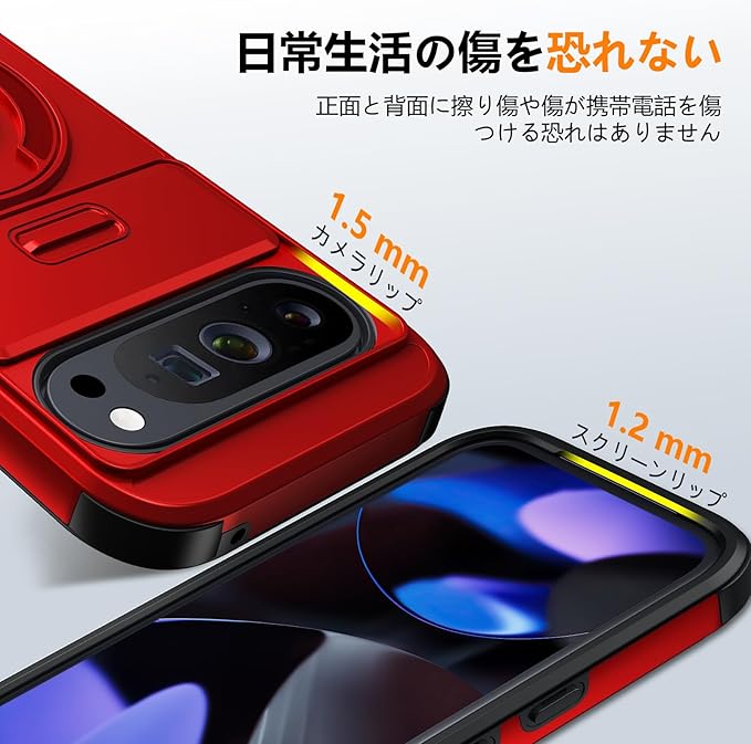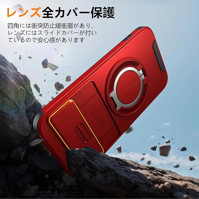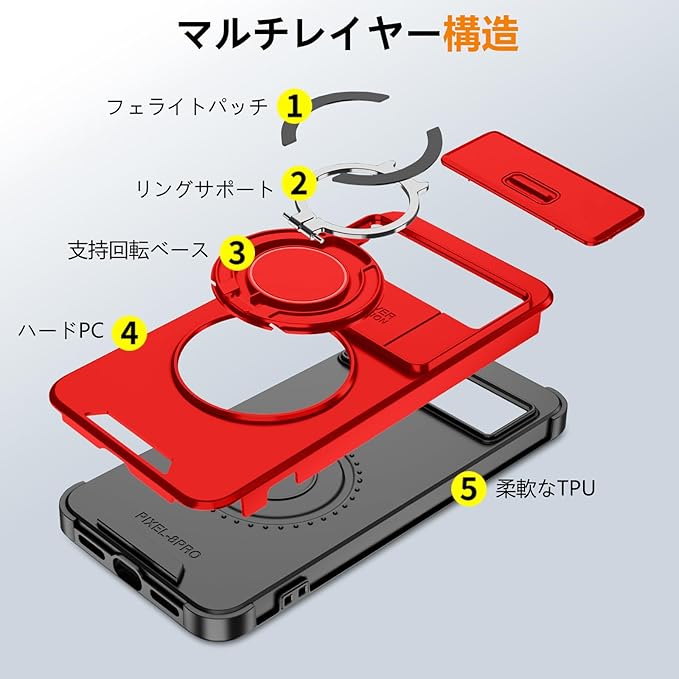 Google Pixel 10 用 ケース Pixel 10 Pro 用 ケース リング付き スライド式カメラカバー 隠しスタンド 耐衝撃 スタンド機能 縦横両対応 車載ホルダー PC TPUバンパー 防塵 人気 落下防止 滑り止め 指紋防止 ピクセル 10/ピクセル 10 Pro カバー 赤 MJJ-1065-09-03