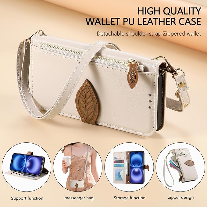 For Google Pixel 10 / 10 Pro ケース 手帳型 グーグルピクセル10 ケース ショルダー Pixel9 / 9Pro カード収納 小銭入れ ジッパー式 ピクセル10 プロ 財布型 スタンド機能 ストラップ付き スマホケース Googleピクセル10プロ 大容量収納 マグネット式 全面保護 高級PUレザー 防指紋 高耐久性 女性用 おしゃれ - ホワイト