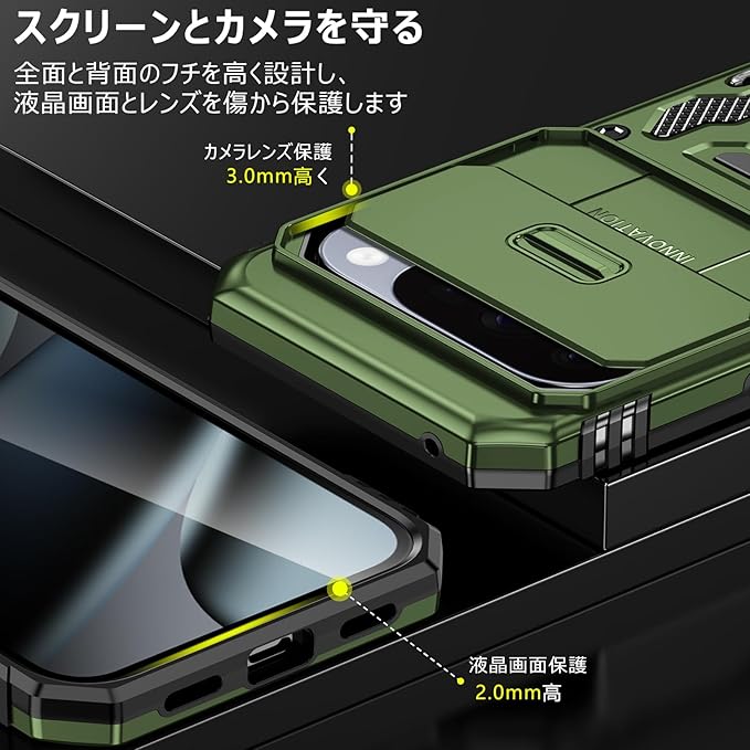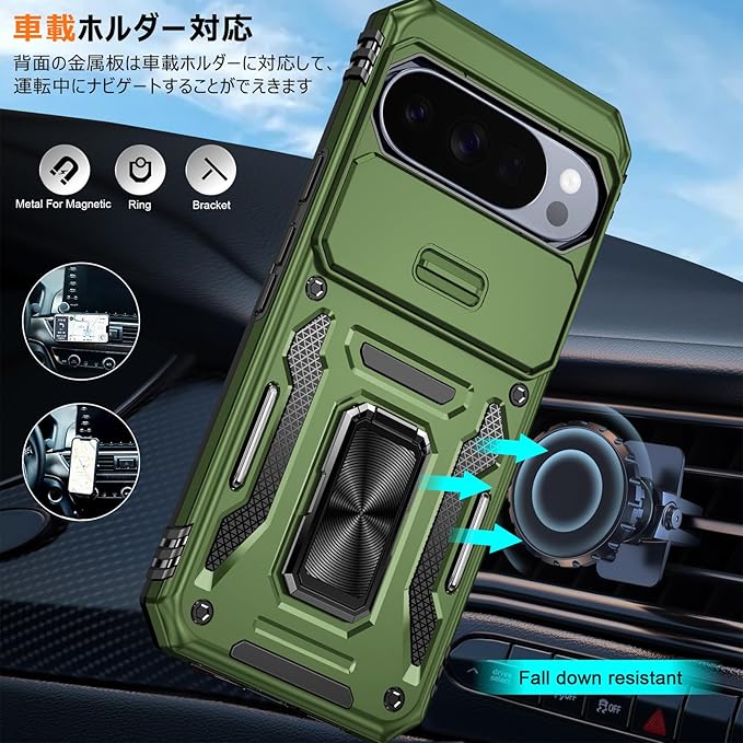 PNEWQNE 対応 Google Pixel 10/10 Pro 用のケース リング付き 衝撃吸収 耐衝撃 スタンド機能 米軍MIL規格 グーグル ピクセル10/10 pro 用のケース 全面保護 360 回転 滑り落ちにくい 人気 おしゃれ 携帯カバー 緑 WY100-21