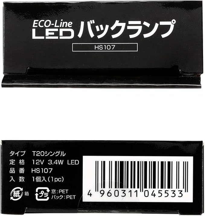 PIAA(ピア) 車用 バルブ バックランプ/コーナリングランプ用 LEDバルブ T20シングル 6500K 310lm ECO-Lineシリーズ_車検対応 1個入 12V/3.4W 極性フリー 全方向拡散8チップ HS107