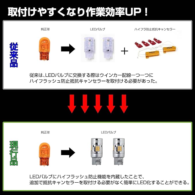 抵抗キャンセラー内蔵: 国産車向けの抵抗キャンセラー内蔵で、車両の電気系統との互換性を確保します。