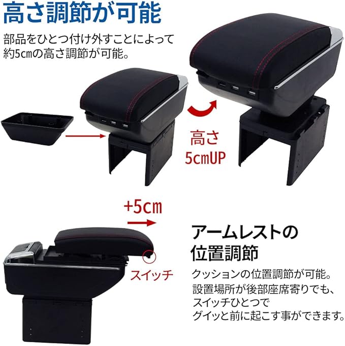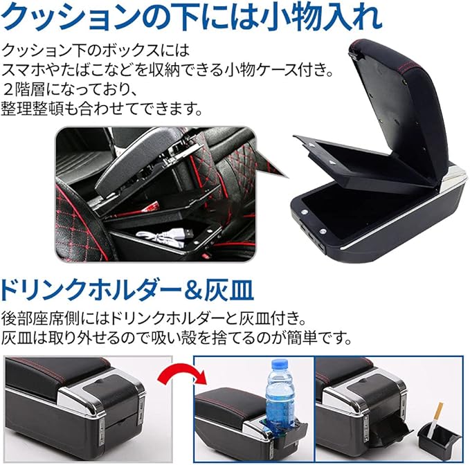 seathestars アームレスト 肘置き 車 軽自動車 普通車 後付け 汎用 コンソールボックス 収納 USB給電ポート付き ドリンクホルダー 肘掛け 幅調整可能 トレー付き 車内収納ボックス (ベージュ)