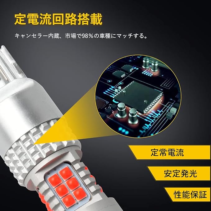 【警告灯点灯防止】警告灯点灯防止用抵抗をバルブに内蔵するので、面倒な警告灯点灯対策・加工は必要ございません。キャンセラー内蔵で、突発的な電圧変動にも影響されない、安定する点灯が続けます、市場で98%の車種にマッチします。
