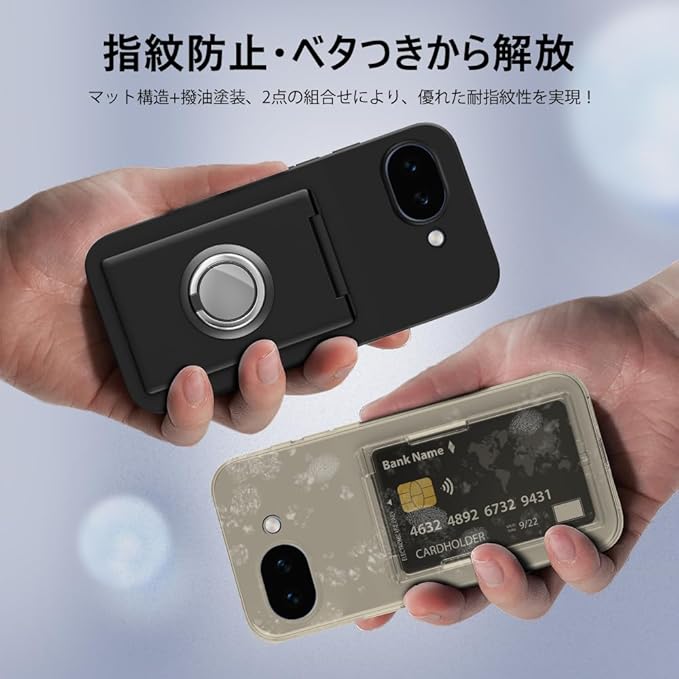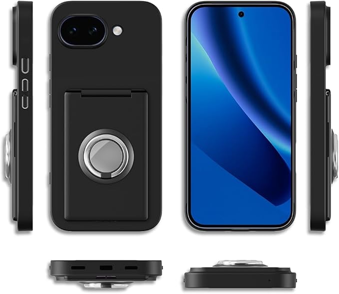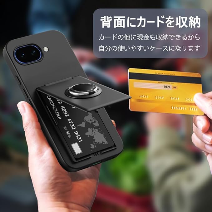 対応 Google Pixel 10A ケース カード収納 鏡付き リング付き クセル10a スマホケース 可愛い ソフト 360 回転リング 縦横両対応 スタンド機能(黑)