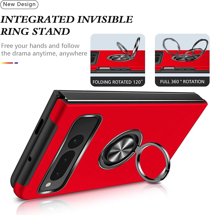 Google Pixel Fold 用 ケース リング付き TPU 耐衝撃 スマホケース 車載対応ホルダー対応 スタンド機能 軽量 薄型 グーグル ピクセル フォールド 用 ケース カメラ保護 衝撃吸収 指紋防止 黄変防止 一体型 四隅滑り止め 手触り良い 保護カバー 赤 SJ15.274