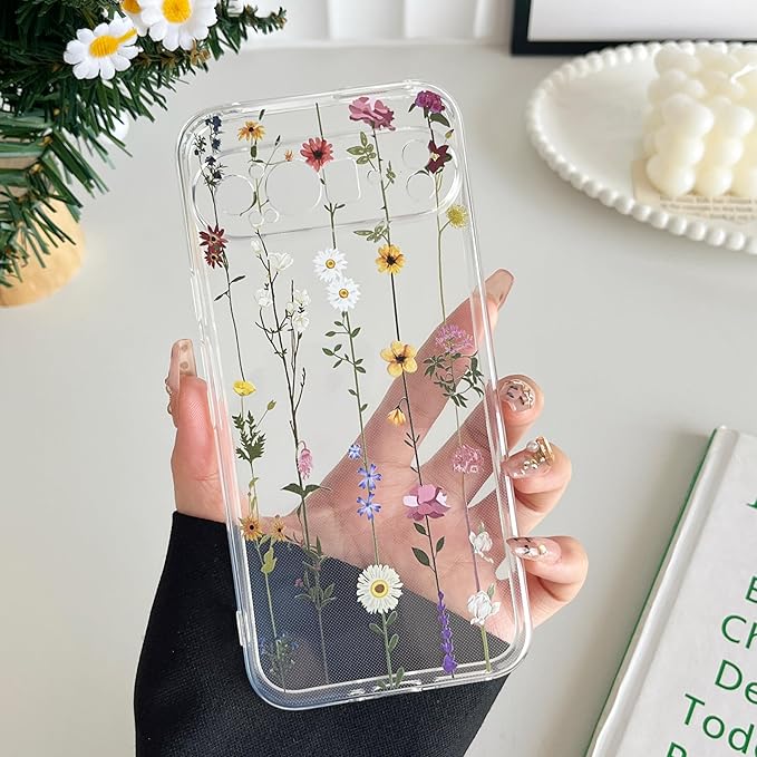 ZTOFERA Google Pixel 9 Pro XL 用花柄ケース かわいい グーグル ピクセル 9 Pro XL クリアケース 韓国 透明 おしゃれ 花 フラワーケース 薄型 軽量 柔軟な ソフト TPU スマホケース 人気 女子 耐衝撃 画面レンズ保護 携帯電話カバー