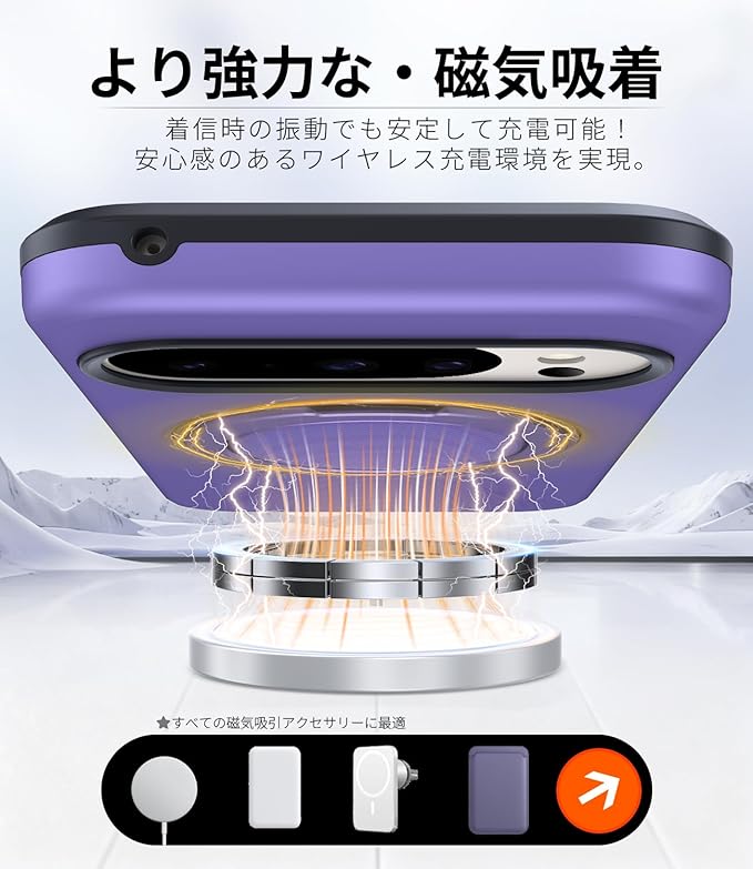 対応 Google Pixel 10 Pro XL 用 ケース magsafe対応 リング付き 耐衝撃 米軍MIL規格 リング マグネット搭載 ワイヤレス充電可能 多機能360度回転 指紋防止 黄変防止 車載ホルダー 紫 C99-pix10pxl-07