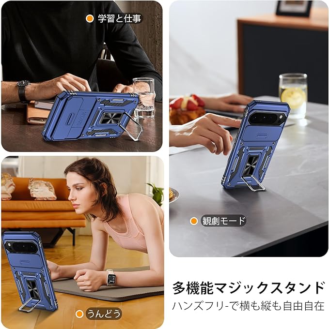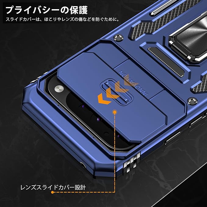 Google Pixel 10 Pro XL 用ケース リング付き 耐衝撃 レンズ保護 TPU+PC 二重構造 バンパー 車載ホルダー対応 360 回転 スタンド機能 スマホカバー グーグル ピクセル10 pro xl 用ケース 一体型 携帯カバー 青 J16-23