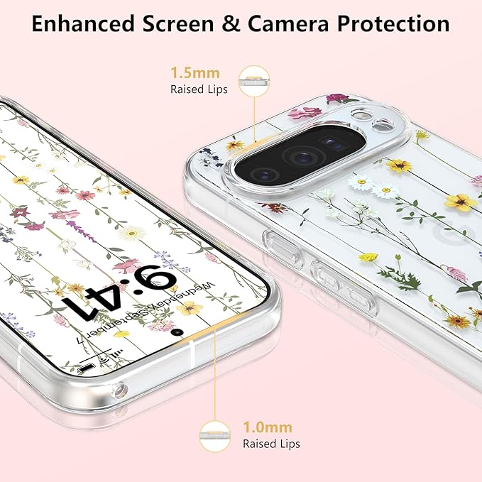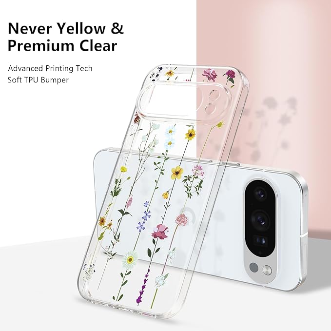 ZTOFERA Google Pixel 10 Pro XL 用花柄ケース かわいい グーグル ピクセル 10 Pro XL クリアケース 韓国 透明 おしゃれ 花 フラワーケース 薄型 軽量 柔軟な ソフト TPU スマホケース 人気 女子 耐衝撃 画面レンズ保護 携帯電話カバー