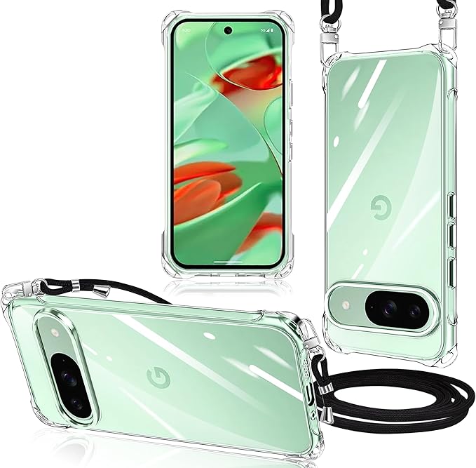 クリア Google Pixel 9 ケース/Pixel 9 Pro ケース ストラップ付き ショルダー 縄掛けケース 耐衝撃 ピクセル 9/9Proカバー 透明 薄型 軽量 TPU スマホケース 肩掛け 斜めかけ 紐付き 長さ調整可能 取り外し可能 落下防止 紛失防止 ワイヤレス充電対応 (クリア)