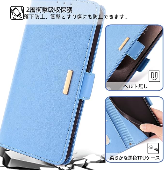 【上質な素材とスタンド機能】外部は上質なPU素材を採用しており、普通のレザーより、耐熱性と柔軟性を一層アップされ、肌のような手触り、夏でも手汗で変な匂いが出てきてません。インナーケースはソフトなTPU素材で、全面保護を与える同時に着脱しやすいです、スマホ本体への損傷の心配ありません。スタンド機能を搭載しており、お好きな角度を調整でき、両手が解放され、お気軽に読書や動画視聴を楽しむことができます。