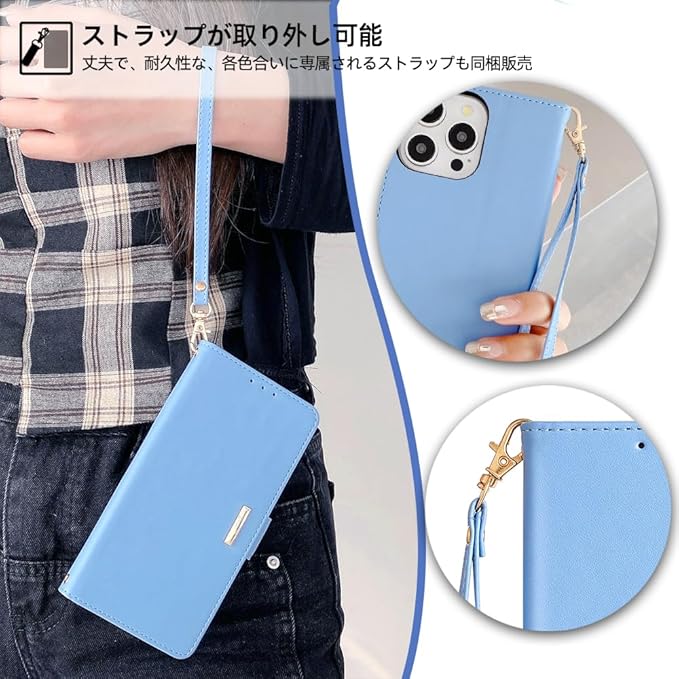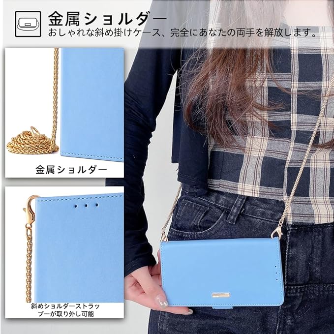 2種類のストラップ付き:▶肩掛けのストラップ 全長120 cm。肩掛けケースになれます。高級感漂う仕様、スタイリッシュな外観で、金具の装飾が美しさと上品さを漂わせてます。斜めがけ、肩掛け、通勤、旅行、犬の散歩、山登り、海へ行く、買い物、外食、重い荷物を持っている時、子供を連れて外出する時もスマホを紛失すること心配なく両手が解放されます。(ケースだけが必要な場合、チェーンが取り外し可能です) ▶ハンドストラップ ハンドストラップを自由に上下ストラップ穴を付ければ、いつでも落下防止できます。