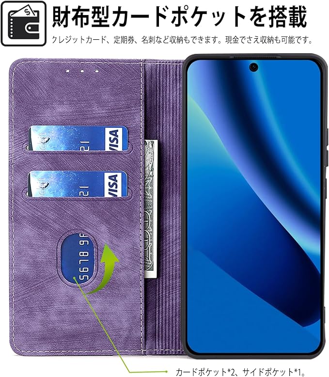 【実用的な機能】レトロなスタイルの手帳型ケースの外観はあなたの好みをよりよく反映し、ファッショナブルな生活を楽しむことができます。実用性が高くて、マグネット式のフリップで携帯をしっかりとカバーできだけではなく、ケースを装着したまま、音量ブボタン、カメラ、コネクターなどのを自由に使えます。車券、IDカード、名刺に便利な片側にカードスロット2つ、銀行券など挿入可能サイドポケット付き、ちょっとしたお出かけにもこれ一つでOK!あなたの人生をより便利にします。