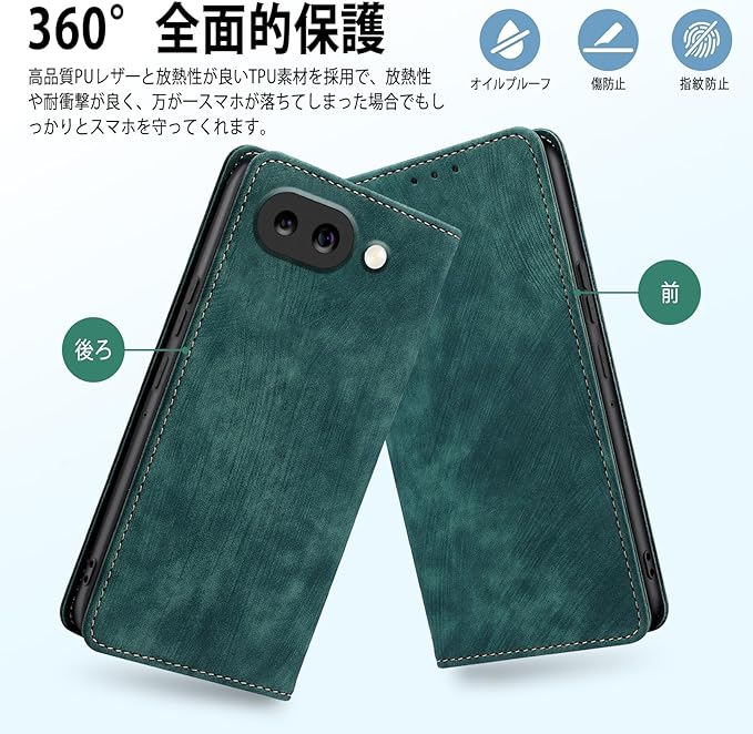 For Google Pixel 10A 対応 ケース 手帳型 スマホケース スマホカバー 携帯カバー 手帳型 PUレザー 柔軟 TPU 肌触り良い 耐摩擦 財布型 レトロなスタイル カバー カード収納ケース 内蔵マグネット 耐衝撃 スタンド機能 おしゃれ 全面保護 手帳型 ケース (グリーン)