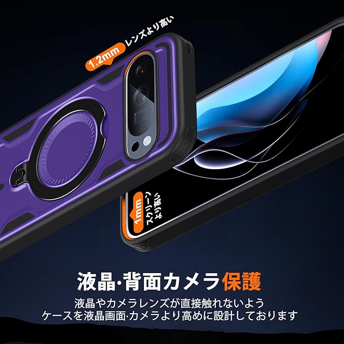 対応 Google Pixel 10 用 ケース Pixel 10 Pro 用 ケース リング付き 隠しスタンド ピクセル 10 プロ カバー 耐衝撃 縦横両対応 マグネット搭載 360度回転スタンド 車載ホルダー ワイヤレス充電 携帯カバー 紫 Q-TH-GP10P-05