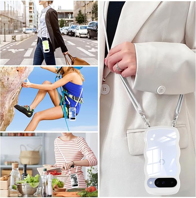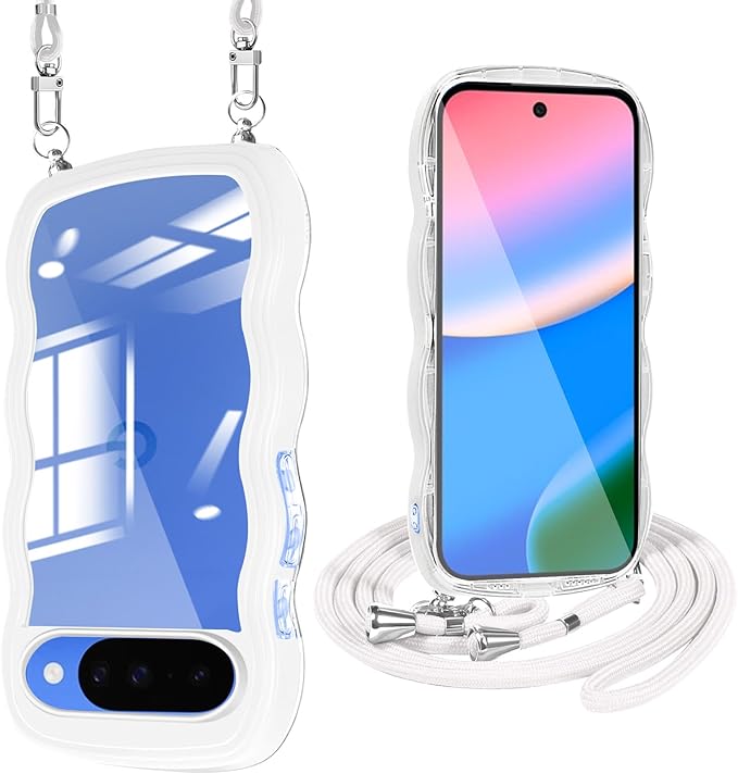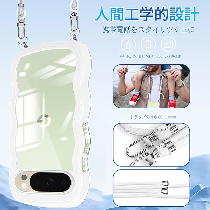 Google Pixel 10 用の ケース ショルダー ストラップ 波状フレーム Pixel 10 Pro 用の カバー 首掛け 斜めかけ 肩がけ 韓国 ピクセル 10 スマホケース(ホワイト)