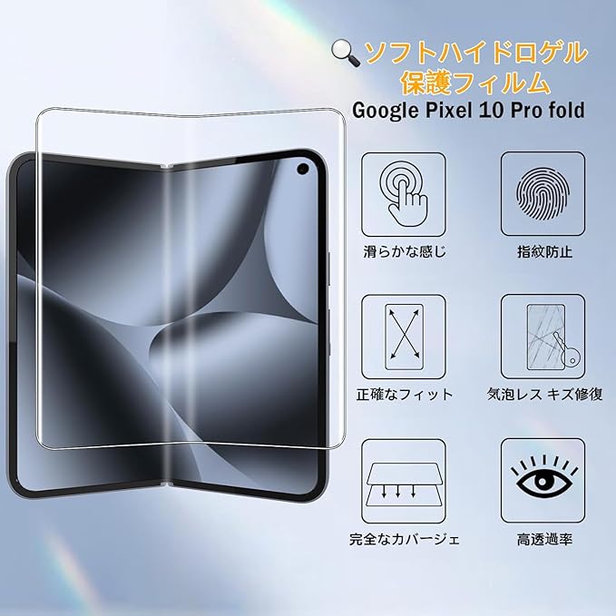 【アンチグレア 4枚セット】For Google Pixel 10 Pro Fold フィルム(2枚)+背面スクリーンフィルム(2枚)指紋防止 グーグル ピクセル 10 Pro Fold 対応 アンチグレア サラサラ タッチ感 衝撃保護 透明感良し 撥水撥油 気泡ゼロ 飛散防止 画面保護フィルム